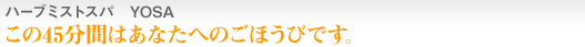 人工的なにおいとは違った、何種類ものハーブの 香りに包まれ、あなたは心から癒されることでしょう。